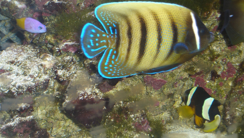Τελικα παρόλη την προσπάθεια δεν εγινε εφικτή η παραμονή του Pomacanthus semicirculatus στο ενυδρείο Αφου ο αυτοκράτορας το πηρε προσωπικά και δεν τον αφησε να παρει ανασα Και προτου γινει το κακο βγήκε από το ενυδρείο Αλλα αντι για αυτόν μπηκε στο ενυδρείο ο κυριος από εδώ Pomacanthus sexstriatusΜεγαλύτερος σε μέγεθος από τον αυτοκράτορα δεν του αφησε πολλα περιθώρια Για το ποιος είναι το αφεντικό Όμως χωρις να γινονται καυγαδες αρκούσε και μονο η παρουσία του Μια βδομαδα τωρα πανε όλα καλα αφου ο κυριος τρωει τα παντα |