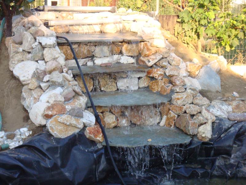 Τρομερός ο καταρράκτης σου. Αυτό είναι και το δείγμα ενός καταρράκτη κάθετης μορφής που μπορεί να φορτώσει δίχως άλλο με αρκετό οξυγόνο τη λίμνη σου. Μπράβο. Πέφτοντας το νερό, δεσμεύει πολλαπλάσια ποσότητα οξυγόνου, απ' ότι να κυλάει. Αυτό παράλληλα, πολλαπλασιάζει και τον θύρυβο της ροής του νερού, μετατρέποντας τον χώρο σου φυσικό ρυάκι.