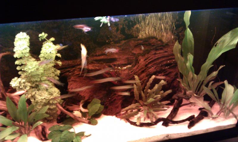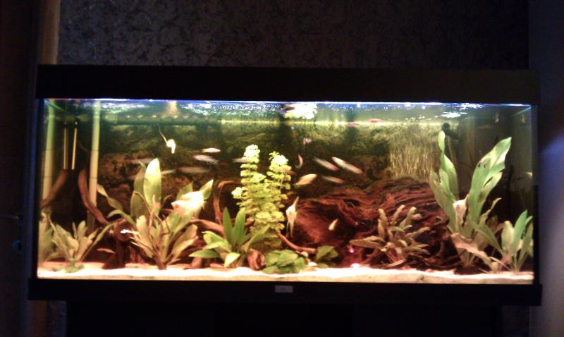 καλησπερα παιδια, αυτο ειναι το τελευταιο ενυδρείο μου 240 λιτρων, λειτουργει 2 χρονια με ενα εξωτερικο και ενα εσωτερικό φιλτρο. δεν εχω βαλει ποτε διοξείδιο που χρειαζονται τα φυτα και δεν ειχα απώλειες από φυτά (οσο εχω βαλει βεβαια