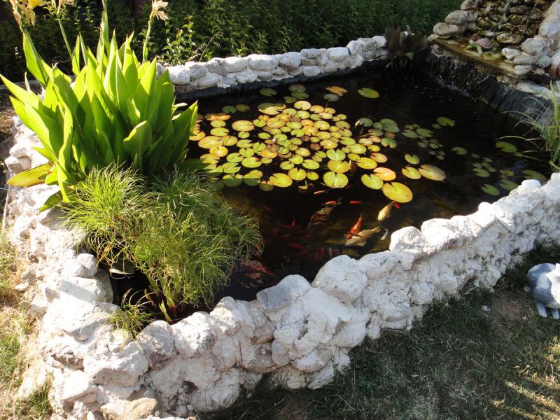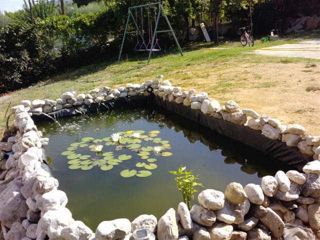 εχω φτιαξει στον κηπο μου μια λιμνη 3χ2 απο λαινερ απο περσι τον ιουνιο , εβγαλε τον χειμωνα χωρις απωλειες , εχει βαθος περιπου 1,10 εωσ 0.60 ειχα μεσα τεσσερα κοι και επτα χρυσοψρα , δυο νουφαρα που ξαναπεταξαν την ανοιξη και ειχαν μεγαλη αναπτυξη και κατι κατι αλλα φυτα ,τωρα η λιμνουλα μου εχει γεμισει μικρα ψαρακια τουλαχιστον θα ειναι καμια 40 που εχουν επιζησει και εχουν κανει και ωραια χρωματα. η λιμνουλα μου ειναι στο ριο πατρων . εχει ενα φιλτρο ετοιμο με μια αντλια 4000λ και μια αεραντλια , μεχρι τωρα η μετρησεις μου ειναι αμμωνια 0 και νιτρικα 0 νιτρικα δεν εχω δει ποτε πανω απο 0 μαλλον απο τα φυτα θα ειναι. ενα βιντεακι που εχω ανεβασει στο youtube http://www.youtube.com/watch?v=cEio4BUDyXU φωτο θα βαλω αλλη φορα γιατι θελου να τις μικρυνω για να ανεβουν . |