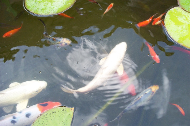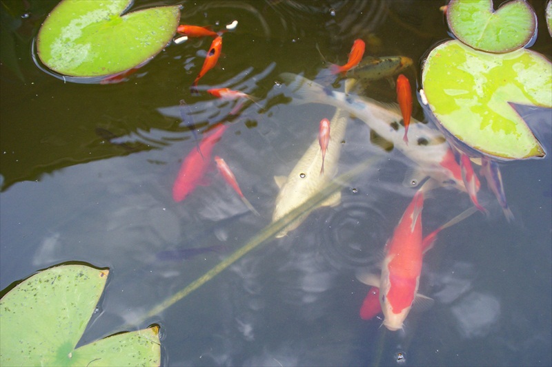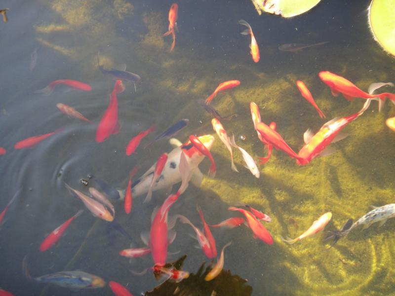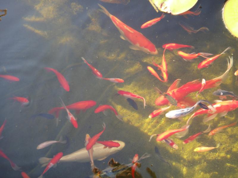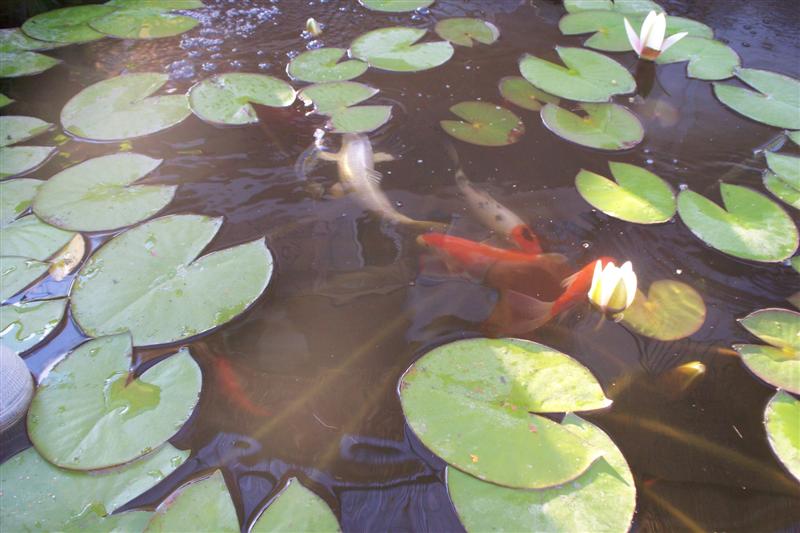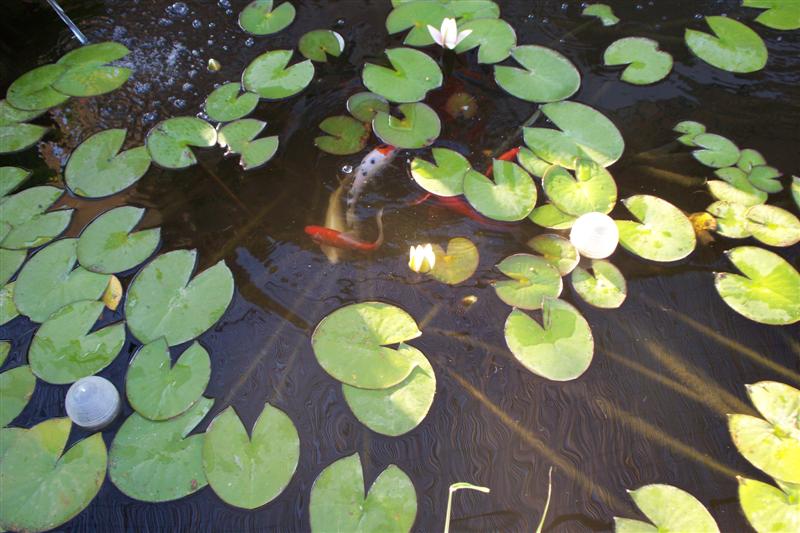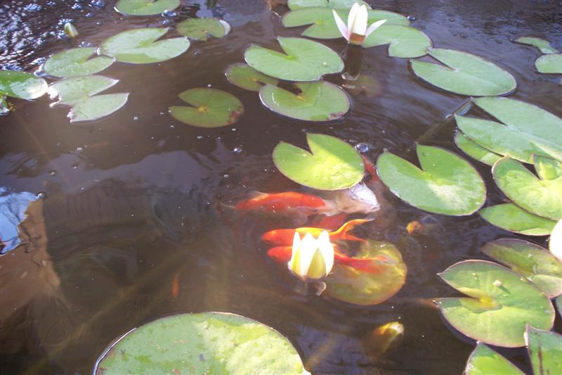 τα κοι εχουν μεγαλωσει αρκετα , και οσο φαι τους ριξω το εξαφανιζουν σε χρονο ττ , τρωνε και μερικα φιλαρακια απο τα νουφαρα , αλλα δεν πηραζει ειναι κουκλια. |