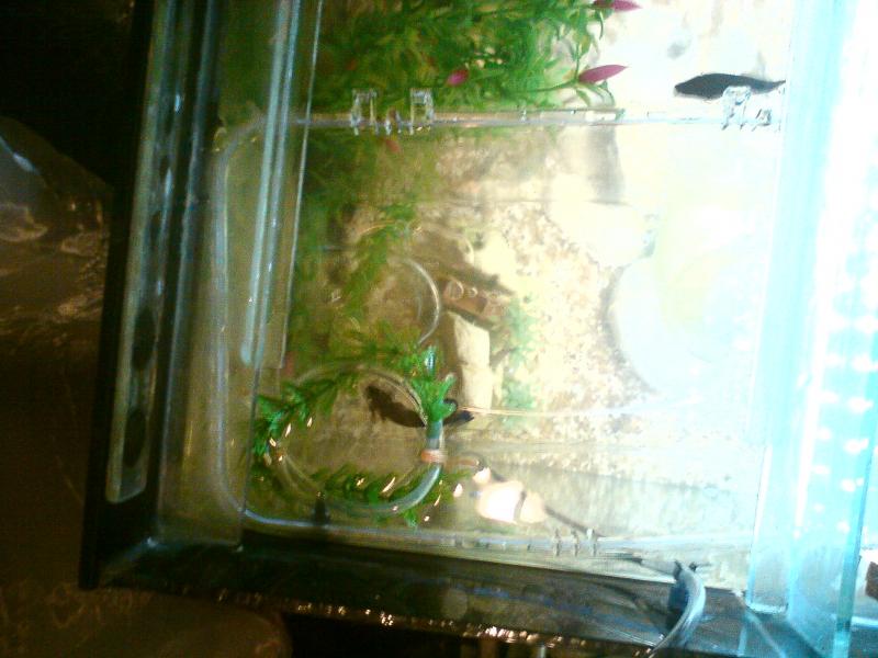Όντας αρκετά νέος στο hobby του fishkeeping, παραθέτω την εξής "πατέντα" που σκεύτηκα μόλις σήμερα και υλοποίησα προ ολίγου, αφού τα μέλη του forum, με αποθάρρυναν (και καλώς έκαναν προφανώς) στο να προσπαθήσω να κάνω αναπαραγωγή στο 6,5 πλαστικό ενυδρειάκι, δίχως φίλτρο. Ορίστε και η αποτυχημένη προσπάθεια: http://www.aquatek.gr/vb/showthread.php?t=54383 Έτσι λοιπόν σκεύτηκα να του ανοίξω τρύπες και να το τοποθετήσω μέσα στο κοινωνικό ενυδρείο μου αυξάνοντας τις πιθανότητες για μια πιο υγειηνή αντιμετώπιση του μονομάχου μου. Αφήνοντας λοιπόν τις δύο θυληκές μονομαχίνες έξω έβαλα τον αρσενικο μονομάχο εντός των "τειχών" μπας και φτιάξει τη φωλιά του, μιας και η επιφάνεια του νερού πλέον δεν διαταρράσεται. Αυτά προς το παρόν, περιμένω μυνήματα σας για ιδέες και λύσεις! |