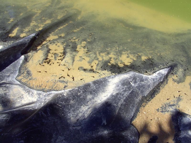 Ενα περίπου μήνα μετά και η ζωή ειναι εδώ: Γυρίνοι, gambusia και ντόπια (κυρίως) φυτά.