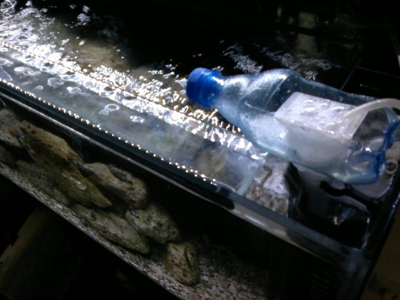Υλικά: μια σωλήνα διαφανη σε 2 κομμάτια που ενώνονται και στο αποσπώμενο κομμάτι έχει κολληθεί ένα μπουκαλάκι αναψυκτικού όπου αυτό βγαίνει και καθαρίζεται . Σύντομα θα κάνω μια παρουσίαση και για τα 2 ενυδρεία |