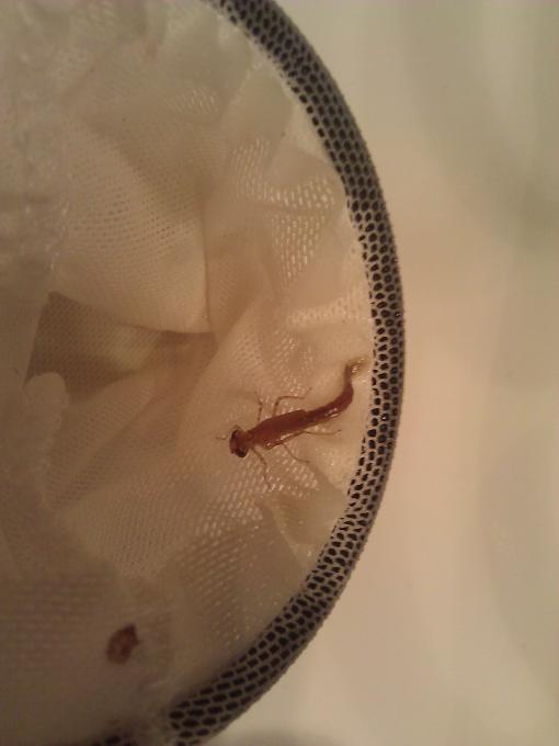 Πριν λίγο βρήκα και το φιλαράκι του εικονιζόμενου πλάσματος και στο κομμάτι κερατόφυλλου που έριξα στο ενυδρείο με τους γόνους, βρήκα και τα αυγά τους. Οπότε ένας τόνος κερατόφυλλου έφυγε στα σκουπίδια... Τώρα αν υπάρχουν και αλλού αυγά τι κάνουμε?????
