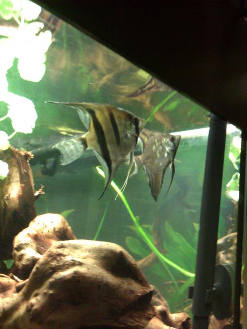 Πριν μια βδομάδα πήρα 2 σκαλάρια μικρά 5 εκ. περιπου.Σήμερα παρατήρησα οτι στην επιδερμίδα τους έχουν κάτι σαν να εχουν πασπαλιστεί με αλεύρι,αυτό όμως φαίνεται μόνο όταν το ψάρι το βλέπουμε απο μπροστα ή απο πίσω και οχι από το πλάι.