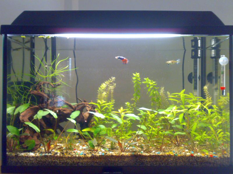 Βάλε και κάτι ακόμα να γεμίσει το ενυδρείο σου, ίσως στο κέντρο κάνα ξύλο μεγάλο! Για πλάτη σίγουρα κάτι πρέπει να βάλεις, κάνα χαρτόνι ας πούμε. Για πρώτη προσπάθεια μια χαρά είσαι, μπράβο!