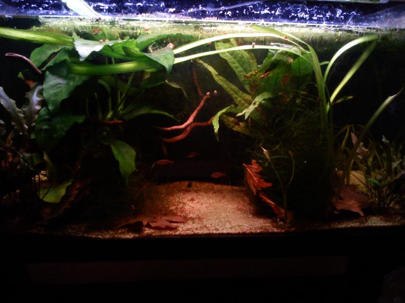Μετά από μετρήσεις με ηλεκτρονικό πεχάμετρο πριν 2-3 μήνες, αντιλήφθηκα ότι το πεχά είχε ξεφύγει αρκετά πάνω από 8 και ότι το νερό ήταν πλέον ακατάλληλο για τα ψαράκια μου. Μετά από αυτό ξεκίνησα μια διαδικασία προσθήκης τύρφης στο φίλτρο για σταδιακή πτώση του πεχά στο 7,5. Πρόσθεσα επίσης για τους ίδιους λόγους και μερικά πλατανόφυλλα. Ταυτόχρονα επειδή ο χειμώνας φέτος ήταν ιδιαίτερα βαρύς και η θερμοκρασία τη νύχτα έπεφτε κάτω από τους 18 βαθμούς, έβαλα θερμαντήρα και ανέβασα της θερμοκρασία στους 22.