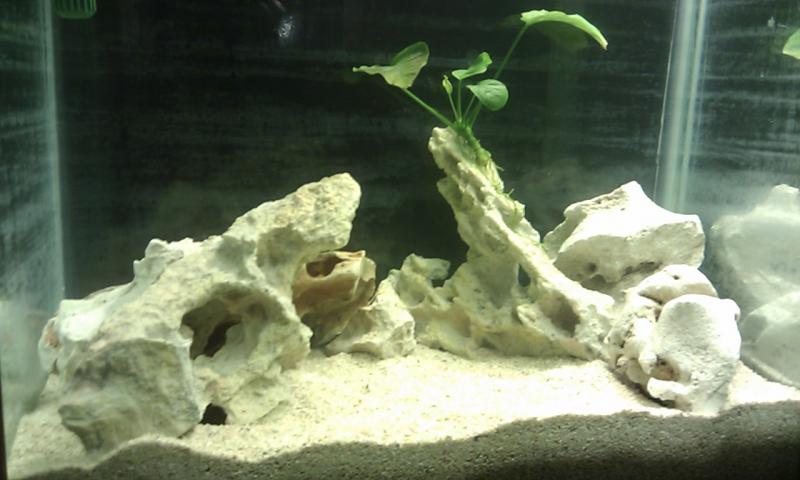 Πάντως μου αρέσει που οι πέτρες ταιριάζουν με την άμμο σε χρώμα....... Θα σου πρότεινα την anubia να την βάλεις κάπου χαμηλά, στην βάση δεξιά της πέτρας που την έχεις ήδη ας πούμε....θα δείχνει πιο ωραία η κορυφή της πέτρας.. Για τα ψαράκια που λες δεν έχω ιδέα που μπορείς να τα βρεις.....