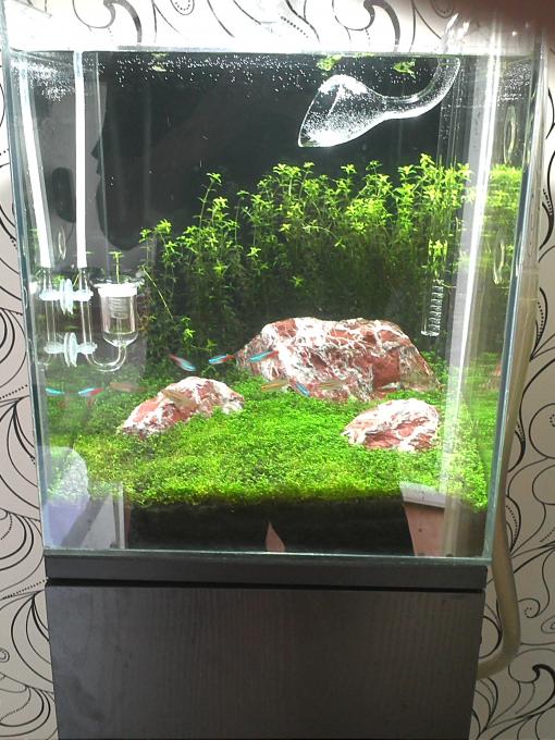 αυτο ειναι το προτο ενυδρειο που εφτιαξα μονος μου. Ειναι ενας κυβος με σκοπο να μπουνε φητα και απο ζωντανα γαριδες και σαληγκαρια. διαστασεις. 31.31.36 ογκος 34,5 λιτρα. επιπλο απο μαυρο ξυλο με διαστασεις. 31,31,100εκ φιλτρο. tetratec ex 400 φωτισμος. DENNERLE nano light 11 watt 6000kelvin/900lumen υπωστρομα Seachem Flourite Black Sand 7kg. θερμοστατης resun 150watt διακοσμητικα πετρα απο μη ασβεστολιθικο υλικο σε κοκκινο χρωμα με ασπρα νερα. και μετα απο αναζητηση αν τυχη να βρω κανενα ξυλο που να ειναι οπως το εχω φανταστη θα το τοποθετισω. θα ηθελα να μου πειτε τι φητα να βαλω σκεφτομαι,να βαλω Hemianthus callitrichoides ''Cuba'' αν και δεν ειμαι σιγουρος οτι θα πετυχη,Vallisneria nana.και για το πισω μερος θελω κατι με μικρα φιλαρακια και να μεγαλωνη γρηγορα . βεβαια αν καποιος θελει να προτινη κατι ειμαι ολος αυτια \ ωπος τι ψαρακια μπαινουν σε αυτα τα λιτρα. |