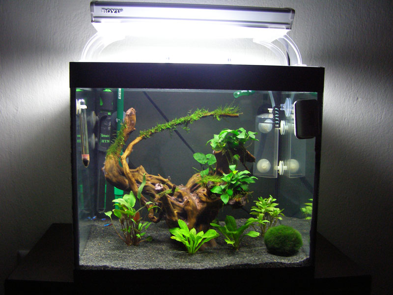 Φυτά: Echinodorus reni, echinodorus grisebachii, cryptocoryne becketi, anubias nana, anubias petite, moss ball, spiky moss, taiwan moss