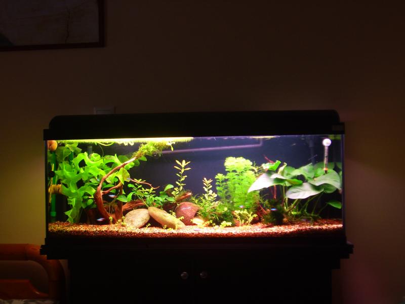 ... Απο τα ψάρια απ' όσο έχω ψάξει στο net και απ οσα χρόνια ασχολούμαι με το χόμπυ, μόνο το puffer χρειάζεται σιγουρα να φύγει και οι 2 πλέκο όταν μεγαλώσουν γιατί γίνονται μεγάλοι. Κατά τ' άλλα, τα υπόλοιπα ταιριάζουν. Για τα tetra με τα endlers υπάρχουν συζητήσεις αλλα στα περισσότερα site που έχω διαβάσει για τα endlers προτείνουν μικρούς ειρηνικούς συγκάτοικους όπως τα tetra: "Compatible tank mates: Endlers make a great addition to a community tank with other small peaceful fish, including, but not limited to, Cory Catfish, small peaceful Tetras (like Neon Tetras), White Clouds, Honey Gourami, Glass Fish, Ghost & Cherry Shrimp, Dwarf Corydoras, small Rainbowfish, Otocinclus Catfish, Zebra Danios, Bolivian Ram Cichlids and African Dwarf Frogs." Οι απώλειες ηταν όλες την μέρα, προφανώς απο κακές συνθήκες απο το pet shop Η anubia δεξια δυστυχώς δεν πάει άλλο προς τα πίσω λόγω των τεράστιων φύλλων της! Δεν ξέρω τί θα την κάνω... απ' όταν εβγαλα τις φωτογραφείες έχει βγάλει άλλα 2 φύλλα τα οποία στριμώχνονται! Επίσης έχω κλαδέψει και την Cabomba και το Polysperma και σκέφτομαι, αν μαζέψω κι άλλα κλαδέματα, να την δώσω πουθενα και να το φυτέψω και το δεξί μέρος! θα ανοίξει και ο τόπος! Αν και την απο κάτω της κρύβονται τα ψαρια πολλές φορες αν φοβούνται! Είναι σαν ομπρέλα-ασπίδα! Το ενυδρείο εγω το έχω και τρέχει περίπου 2 μήνες και το πήρα έτοιμο, στρωμένο απο συνχομπίστα, απλα αλλαξα το aquascape! |