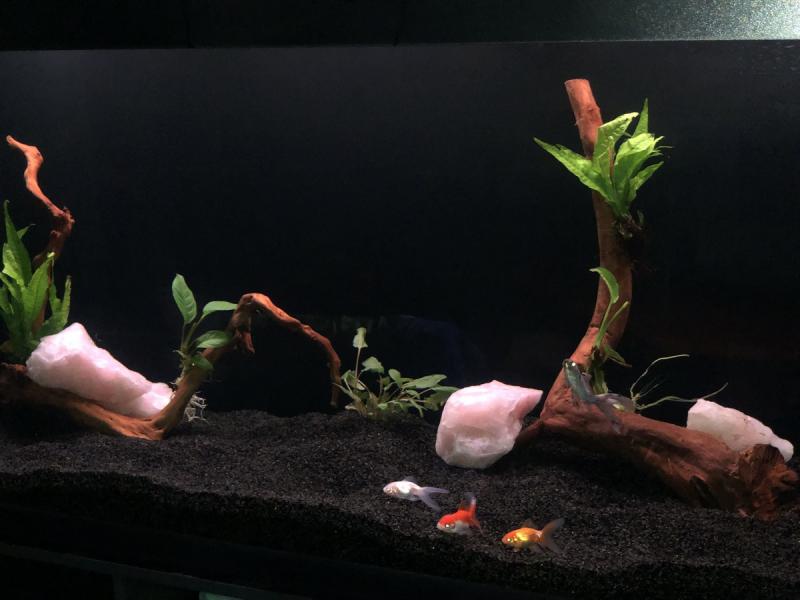 Φιλοξενώντας διάφορα είδη mbuna,aulonocara kai haps και μετά από αυτό το θέμα http://www.aquatek.gr/vb/showthread.php?t=101273 συνεχίζω το ταξίδι πιο ανατολικα στα χρυσόψαρα.Ο λογος είναι ότι η γυναίκα και τα παιδιά ήθελαν ένα πιο όμορφο aquascape για το σαλόνι μας απο το πετρώδες αφρικάνικο. Θα ήθελα εδώ να κάνω μια επισύναψη ότι από την μικρή μου εμπειρια σε predators, ενυδρεία σαν το δικό μου 400 λίτρα είναι πολύ μικρά για τα ψάρια.Θέλουν τουλάχιστον 1000 λίτρα.