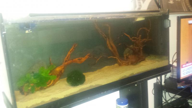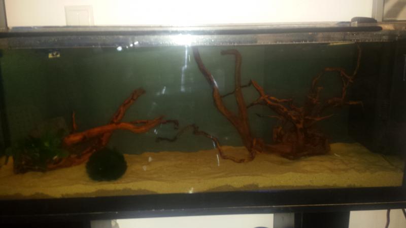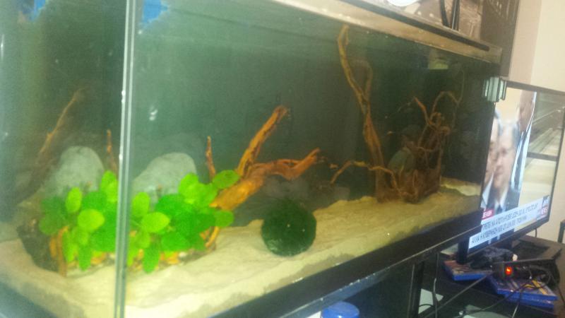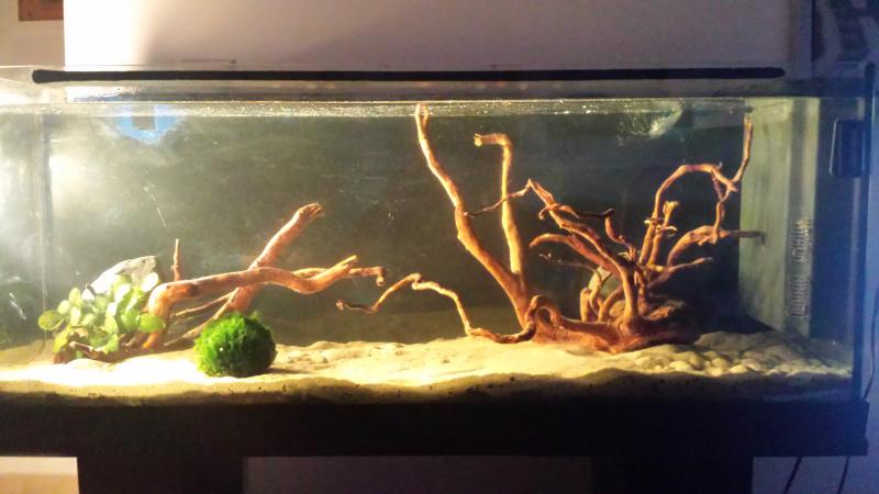 Από διακόσμηση τωρα έχω 2 μεγάλες ριζες πάνω στις οποίες θα δέσω anubia και ίσως κερατοφυλλο (εάν γίνεται το κερατοφυλλο να είναι βυθισμένο) και αριστερά δεξιά κσι πίσω από τις ρίζες σκέφτομαι να βάλω εύκολα κσι ψηλά φυτά.