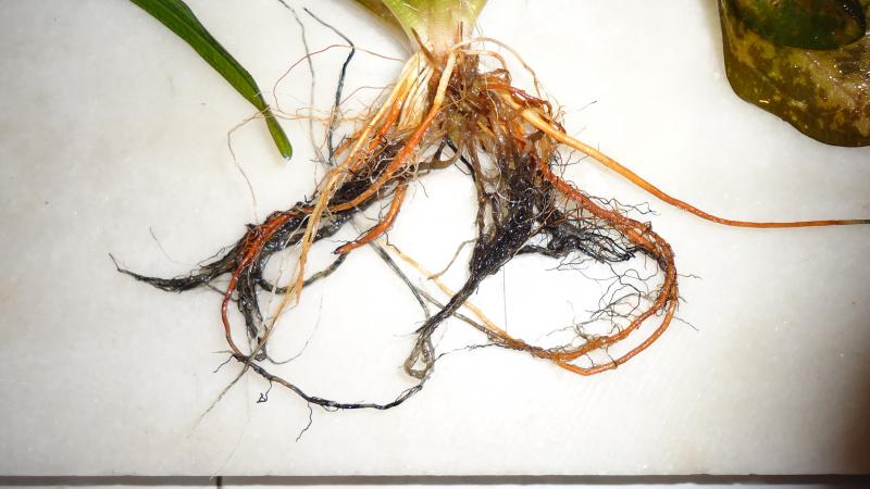 Αν μπορεις βγαλε λιγο υποστρωμα που να μην εχει σαπιες ριζες και μυρησε το.