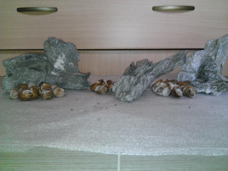 Σήμερα παρέλαβα πέτρες και φόντο. Έκανα μια πρόχειρη σύνθεση με τις πέτρες, έτσι όπως λέω να τις βάλω στο ενυδρείο. Πως σας φαίνεται;