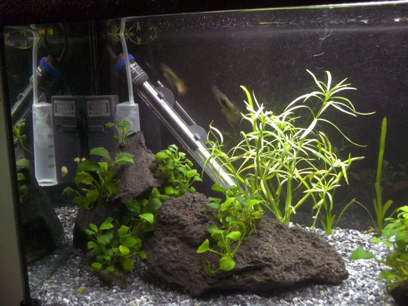 Θερμοκρασία¶λλες πληροφορίες: Τρεχει τρεις εβδομαδες,οι vallisneries και οι ανουμπιες τωρα πιασανε,τα αλλα δυο φυτα μπηκαν μολις χθες.Η 2η πετρα απο αριστερα θα βγει για να μπει ενα ξυλο που πανω θα δεθει moss και ανουμπιες. Στο μελλον θα μπουν και γαριδες red cherry