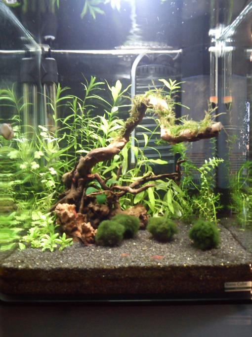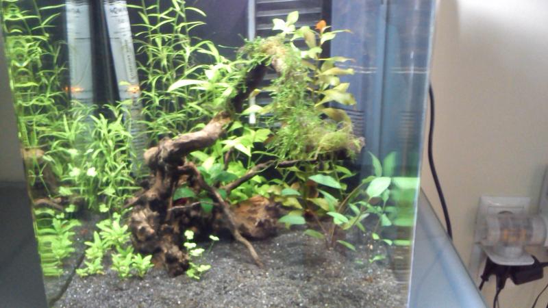 Διαστάσεις:30x30x35 Όγκος: Κατηγορία:γαριδαδικο με ψαρακια Φυτά:egeria densa,java moss,moss ball,Rotala rotundifolia,Staurogyne repens,Heteranthera zosterifolia,Hydrocotyle tripartita,Hygrophila polysperma Ψάρια / ¶λλα είδη:3 cpd(θα προσθεθουν αλλα 3),red cherry Διακοσμητικά υλικά:1 ριζα,βυθός:Nano Garnelenkies Sulawesi μαυρο,υπόστρωμα:Nano DeponitMix (χαλίκι, ξύλα κ.λ.π.) Φόντο:μαυρο Φωτισμός:9watt(θα βαλω αλλη μια 9watt ή 11 watt) Διάρκεια φωτισμού:7 ωρες Φιλτράρισμα:corner filter Θερμοστάτης:εσωτερικος θερμοστατης aquael 50 Λίπανση Παροχή CO2 Παράμετροι: pH:7.5 Γενική σκληρότητα (GH):- Ανθρακική σκληρότητα (ΚΗ):- Αμμωνία (ΝΗ3):- Νιτρώδη (ΝΟ2):- Νιτρικά (ΝΟ3):12.5 Αλλαγές νερού:30% την βδομαδα Θερμοκρασία:26-28 ¶λλες πληροφορίες: Φωτογραφία: θα ηθελα να ευχαριστησω τον Skydiver και τον klipitiklopos για τα φυτα που μου εδωσαν |