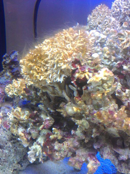 Απ'ότι παρατηρώ όλος ο βράχος σου έχει κολλημένα επάνω ψόφια sps και μάλιστα φρεσκοψόφια(λόγω του άσπρου χρώματος) ή ψοφιων που ήταν καιρό εκτός ενυδρείου και μπήκαν πρόσφατα. Που τα βρήκες αυτά και τα έβαλες? Όταν ψοφάει κάποιο κοράλι(συνήθως κάποιο sps) τότε πάει διατομική και κάθεται πάνω στον ιστό του. Θα σου πρότεινα να βγάλεις όλα τα νεκρά κοράλια εκτός. Δεν σου προσφέρουν τίποτα, αλλά και είναι και άσχημα νεκρά. |