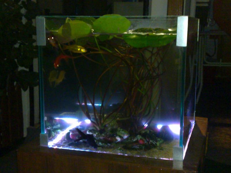 Για σας και πάλι παιδιά. Αυτό είναι το 1ο ενυδρείο που ασχολήθηκα. Όλα ξεκίνησαν τον Μάιο του 2012 όταν ένας φίλος μου χάρισε 1 νούφαρο για το ταρατσόκηπο μου. Στην αρχή έφτιαξα τη γυάλα σε ένα φίλο τζαμά και αφού μπήκε το νούφαρο μου πετάξανε την ιδέα να βάλω και κανα χρυσόψαρο μέσα. Αυτό ήταν, έφαγα κόλλημα. Φυσικά τότε άρχισαν και τα ΠΟΛΛΑ και τα ΜΕΓΑΛΑ λάθη. Ξεκίνησα με 2 χρυσόψαρα και έφτασα να έχω 10 χρυσόψαρα, 2 pleco, 4 chinesealgaeeaterκαι καμιά 12αρια Gappy. Με τις μεγάλες ζέστες άρχισα να χάνω τα gappy, κατάλαβα πως κάτι δεν πάει καλά, γιατί δεν πέθαιναν αλλά τα έβρισκα έξω από το ενυδρείο ή ψόφια πάνω στα φύλλα του νούφαρου. Τότε ασχολήθηκα να ψάχνω στο internet και άρχισα να διαβάζω γενικότερα και έμαθα κάτι λίγα πραγματάκια. Ίσως να ήμουνα και λίγο τυχερός γιατί εκτός από τα gappy δεν είχα άλλες απώλειες εκτός από ένα χρυσόψαρο μικρό που χτύπησα κατά λάθος με τη βούρτσα που καθάριζα το ενυδρείο, πολύ στεναχώρια τότε, πάρα πολύ.