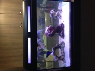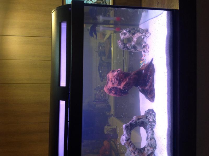 απ οτι βλεπω ειναι crown tail ομονομαχος, να σου ζησει! τα πολυχρωμα πετραδακια που εβαλες , βγαλτα αμεσα.. δεν προσφερουν κατι, επισεις μπορει να βγαζουν και διαφορες ουσιες στο νερο.. βγαλε και το διακοσμητικο που βλεπω μπροστα..τα ιδια ισχυουν και γι αυτο.. ψαξε να βαλεις καμια φυσικη ριζα redmoor ή mopani και φευγεις αμεσα στον kgf για φυτα |
