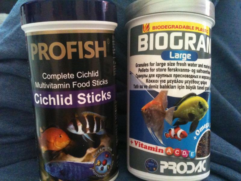 PROFISH Cichlid Sticks Συστατικά : Vegetable protein concentrate, fish meal, fish oil, shells dried yeast, paprika, extrak, cereals. BIOGRAN Συστατικά. Δημητριακά, σόγια, οστρακοειδή, μαγιά, λαχανικά, φύκια Και οι δυο τροφές συνιστώνται για κιχλίδες. Παρακάτω βλέπετε και φωτό απο το χαρτάκι με τις τιμές του τεστ για τα ΝΟ3 (το χρωμα που φαίνεται από το τεστ που κανω εγω αντιστοιχεί στα 2mg/l. |