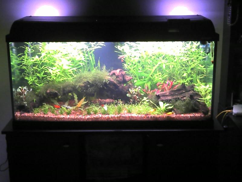 μου αρεσει το στησιμο και η ριζα,το χαλικι αν και πολυχρωμο δινει αλλη αισθηση οπως λεει και ο αδελφος μου κατι απο δασος!τι θερμοκρασια πρεπει να την κατεβασεις λιγο ειναι πολυ ψηλα!τα κορυ θελουν κοπαδακι για να αισθανοντε ανετα,ελπιζω να μην τα ενοχλει ο βυθος.ο φωτισμος σου ειναι περιπου στα 0,6/λιτρο για απλα φυτα ειναι αρκετος,αν θελεις στο μελλον να πας σε πιο δυσκολα θα χρειαστεις καποια αναβαθμιση σιγουρα.καλη συνεχεια ευχομαι φιλε μου