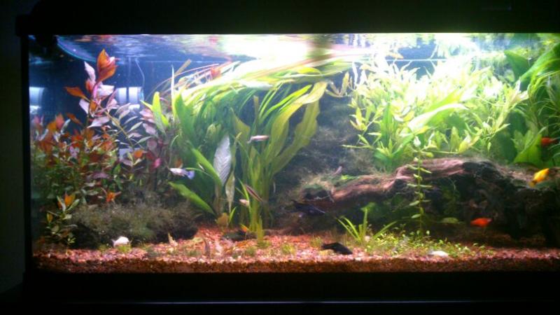 Αλλαγές νερού:30% καθε βδομαδα(ενυδρειο 50 λιτρων κατω απο το μεγαλο(στο επιπλο) με φιλτρο γεματο τυρφη θερμοστατη και κυκλοφορητη 1300Lt/h)