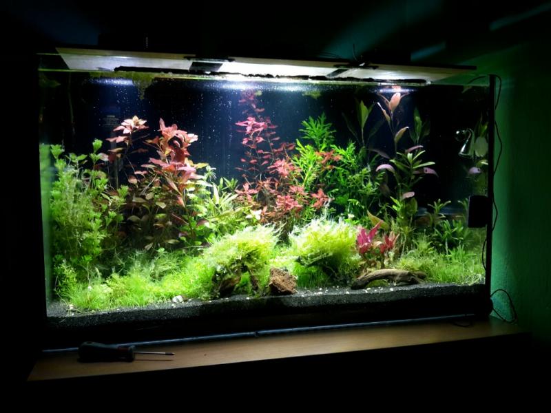 Διαστάσεις: 80*40*40 Όγκος:120 Κατηγορία: Φυτά: Διαφορα Ψάρια / ¶λλα είδη: CPD Διακοσμητικά υλικά: Λιγα ξυλα με Moss (χαλίκι, ξύλα κ.λ.π.) Φόντο: Μαυρο Φωτισμός: Αρχικα led 50watt σε λιγες μερες θα προστεθουν αλλα 100w Διάρκεια φωτισμού: 8ωρες Φιλτράρισμα: eheim 2236 Θερμοστάτης:jager 150w Λίπανση: Ναι flourish , flourish excel , flourish pottasium , Tropica Premium Fertilizer Παροχή CO2: Ναι Παράμετροι: pH: 6.8 Ανθρακική σκληρότητα (ΚΗ): 5 Αλλαγές νερού: καθε 7 μερες Θερμοκρασία: 22βαθμοι ¶λλες πληροφορίες: υποστρωμα Plant Growth Substrate τροπικα Φωτογραφία: ![]() _![]() _________________