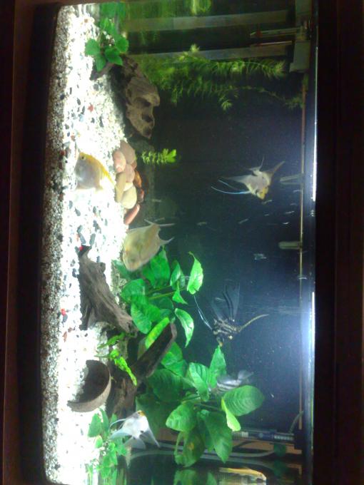 ph7.2 kh3-6 περίπου GH>14 ΝΟ2=0 ΝΟ3 50 περιπου χρόνος λειτουργίας του ενυδρείου, 1 χρόνο. φυτά 2 ανούμπιες, 2 ανούμπιες νάνα πολύ λίγο κερατόφυλλο 1 φτέρη 3 ξύλα μία καρύδα. Υπόστρωμα: λεπτό χαλίκι |