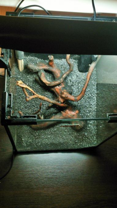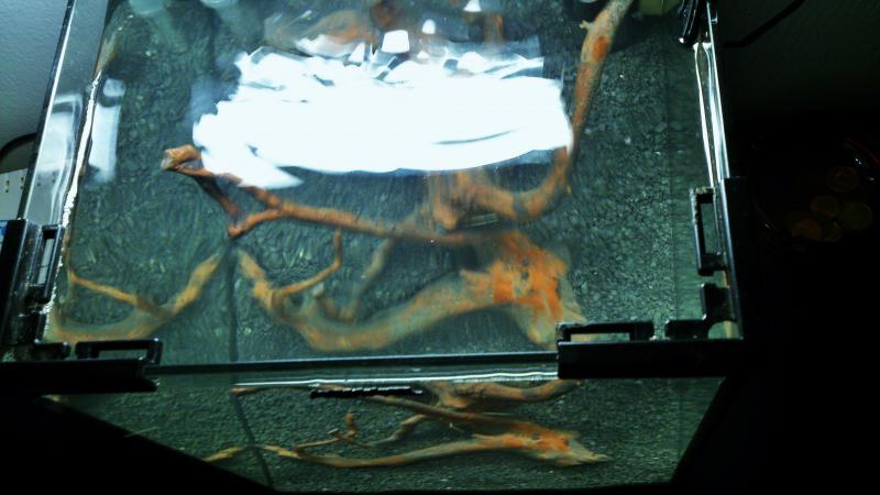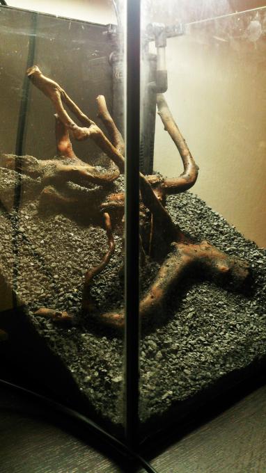 Ανανέωση του θέματος .... βάφτηκε η πλατη του ενυδρείου μάυρη, μπήκε το ξύλο η άμμος θερμοστάτης , φίλτρο με σφουγγαρι και siporax... σε λίγο η αυριο οι φωτο !