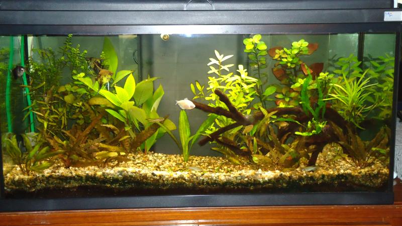 Διαστάσεις: 80-35-45 Όγκος:120lt Κατηγορία: κοινωνικό Φυτά: hygrophila corymbosa--- hygrophila lacustris------ ludwigia mullerti---- rotala rotundifolia και άλλα δε τα θυμάμαι όλα Ψάρια / ¶λλα είδη:3 αγγελόψαρα 3 ζέβρες 2 χήρες Διακοσμητικά υλικά: (χαλίκι, ξύλα κ.λ.π.) ξύλο από αμπέλι Φόντο: μαύρο χαρτόνι Φωτισμός:54 w Διάρκεια φωτισμού: 8 ώρες με χρονοδιακόπτη Φιλτράρισμα: εσωτερικό Θερμοστάτης: ναι με κοντρόλερ STC 1000 Λίπανση: flourish 0.5 ml παρά μέρα Παροχή CO2:εδώ και δύο βδομάδες 2 kg μπουκάλα παίρνει εντολή από χρονοδιακόπτη Παράμετροι: pH:7.4 Γενική σκληρότητα (GH):16 Ανθρακική σκληρότητα (ΚΗ): Αμμωνία (ΝΗ3):0 Νιτρώδη (ΝΟ2):0 Νιτρικά (ΝΟ3):16 Αλλαγές νερού:1 φόρα την εβδομάδα το 30% Θερμοκρασία:26 με stc 1000 ¶λλες πληροφορίες: Φωτογραφία: |