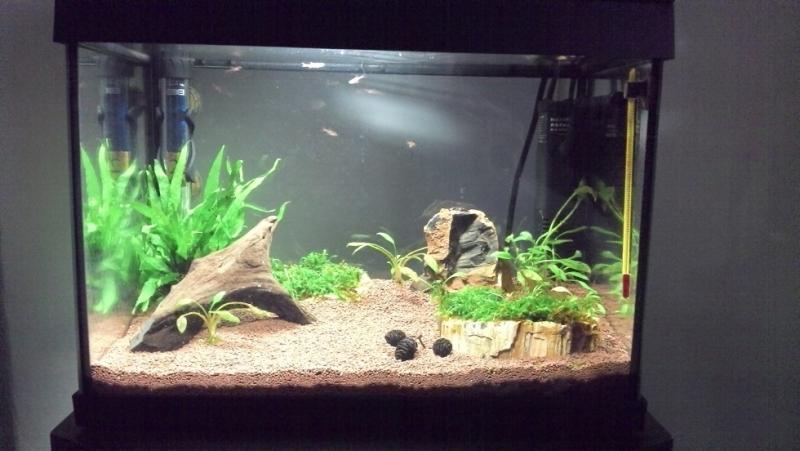 Eδώ ένα update από τη ζουγκλίτσα πλέον του φίλου, μετά από ένα χρόνο που τρέχει το ενυδρείο του. Σε κανα μήνα πάει στο 60λιτρο που λέγαμε και θα μεγαλώσει και λίγο το κοπάδι:
