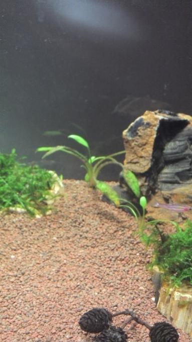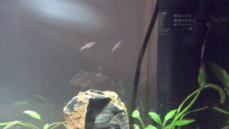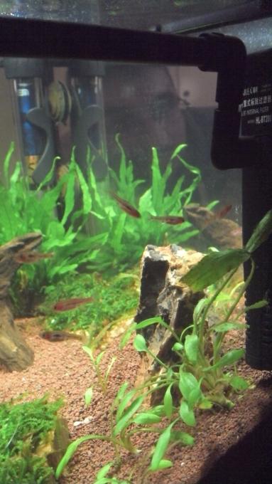 Εδω και 3-4 φωτο που καταφερα σημερα με το κινητο να βγαλω τα ψαρακια του: (Eχουν αρχισει να κοκκινιζουν και λιγο κοντα στο κεφαλι και ενα καπως και στο σωμα...πιο πολυ για boraras merah μου κανουν...εδω microrasboras.):