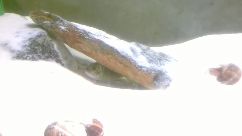 Δεν είναι αποκαλυπτικές. Προσπάθησε για μια που να δείχνει ολόκληρο το ψάρι από το πλάι. (Σαν mbuna μου φαίνεται τι μέγεθος έχει? )