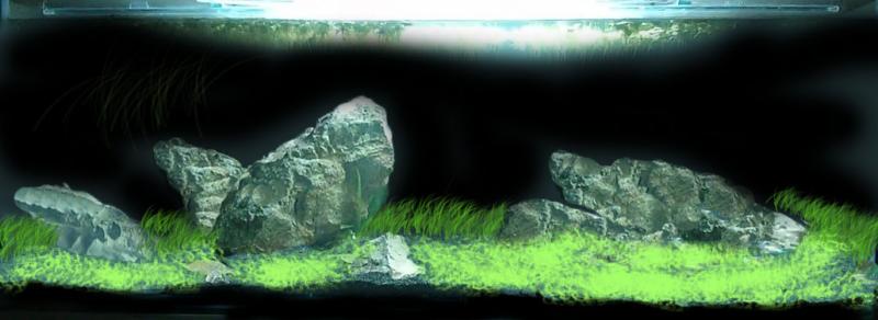 Είναι στενό και κοντό και είναι μέσα σε τοίχο , κρυμμένο... 100-30-30 .. Έπρεπε να αλλάξω οπωσδήποτε το υπόστρωμα γιατί είχε διαλυθεί , είχα βάλει χαλίκι- flourite και το ρημαδιασμένο το soil του oliver knott , μετά από 2 χρόνια , τι σκούπες βυθού εκανα , το soli έχει γίνει σκόνη και με το παραμικρό αιωρείται στο νερό, με αποτέλεσμα να μπουκώνει μες την εβδομάδα το φίλτρο... και να αιωρούνται συνέχεια σωματίδια.. Οπότε πήρα την απόφαση , και επειδή δεν θέλω να κλαδεύω και σε αυτό με τις ώρες είπα να δοκιμάσω την τύχη μου με το iwagumi , μίας και είχα μαζέψει πέτρες από το βουνό πριν κάτι χρόνια και τις είχα να κάθονται. Υπόστρωμα έχω στην άκρη μαύρο φλουριτη , 2 σακουλάκια, και θα βαλω και χαλίκι χαλαζιακό. Το νερό του δικτύου , είναι σκληρό , όποτε από φυτά, glostostigma , tenelus .marsilea , Hydrocotyle,pogostem helferi, starogyne repens , αυτά τα είχα δοκιμάσει σε σκληρό νερό παλαιότερα , πισω σκεφτομαι γιa eleocharis accicularis , δεν το έχω δοκιμάσει σε σκληρό νερό θα δούμε... :P Είχα φτιάξει ένα προσχέδιο περίπου για ένα φίλο και θα πάω με αυτό ... |