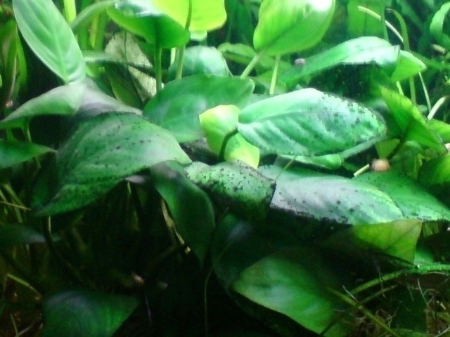 Στην πρώτη φωτογραφία φαίνεται μια γενική άποψη του ενυδρείου. Στη δεύτερη φωτογραφία παρουσιάζεται η άλγη που αναπτύχθηκε πάνω στα φύλλα της Anubias Barteri. Πιθανόν να είναι bga. Στην τρίτη φωτογραφία παρουσιάζεται η τριχοειδής άλγη που αναπτύχθηκε πάνω στα φύλλα της Vallisneria Spiralis. Στην προτελευταία φωτογραφία παρυσιάζεται ο άγνωστος κάτοικος του ενυδρείου μου. Υποθέτω πως πρόκειται για το είδος Gyrinoceilus Aymonieri (Chinese algae-eater). Κάποιος έμπειρος ίσως θα μπορούσε να δώσει περισσότερες πληροφορίες. Τέλος παρουσιάζεται ο τρόπος με τον οποίο οξυγονώνεται το νερό του ενυδρείου από το Microsorium Pteropus. |