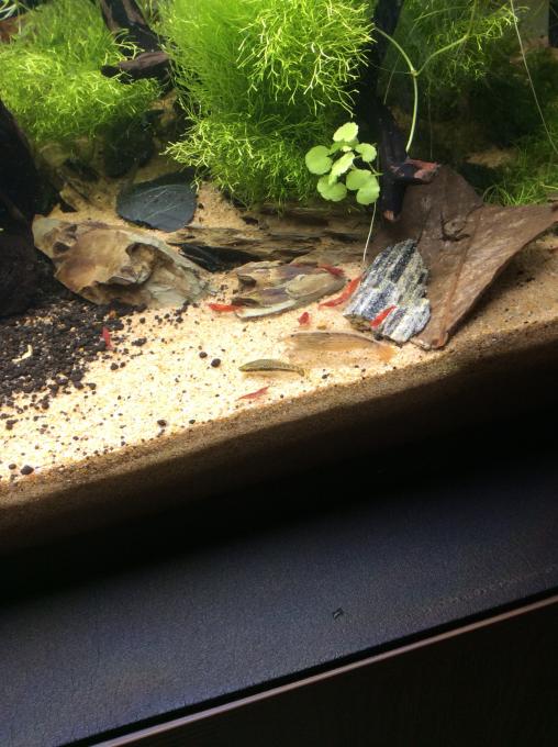 Ψάρια / Άλλα είδη: 10x amano shrimps, 4x Wood-Banana (θα μπούνε και άλλες για να μεγαλώσει το κοπάδι), 4x Neritina Puligera Snails , 4x Ottos και περιμένω άλλους 2 για να κλείσω το κοπάδι. Περιμένω και κάποιες άλλες γαρίδες επίσης.