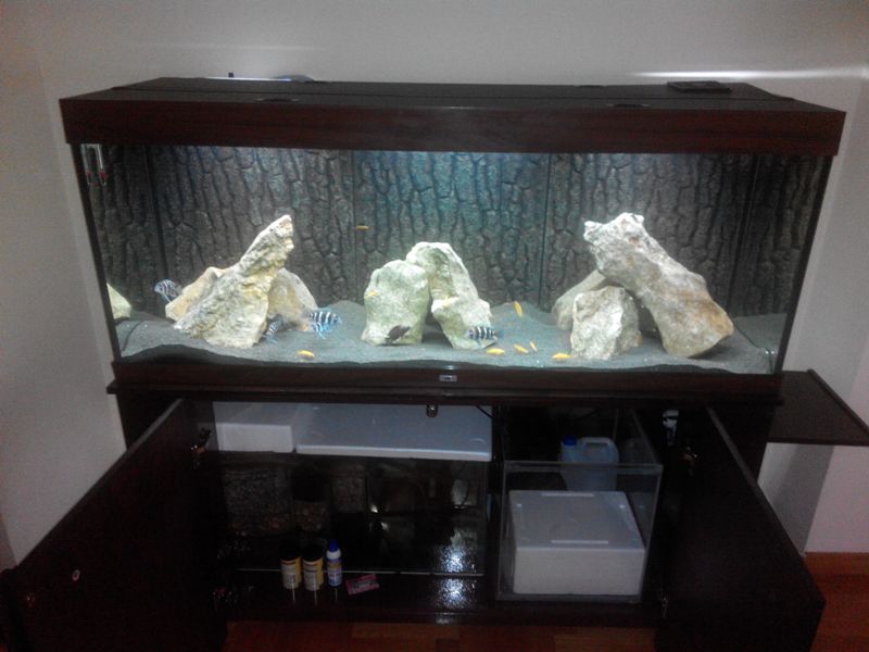 Έχω ένα Ριο 400 πατενταρισμένο με σαμπ 120λιτρων (http://www.aquatek.gr/vb/showthread.php?t=23930) το οποίο έχει περάσει πολλα βάσανα. Πριν 2-3 μήνες το ενυδρείο φιλοξενουσε δίσκους αλλά λόγω μετακόμισης και αλλαγής πλάνων, στο νεο μου σπίτι προορίζεται για βιοτοπικό ταγκανίκας. Ειναι στρωμένο με μπόλι από το παλιό και τώρα περιμένει τους νέους ενοίκους που σκεφτομαι να είναι 3-4 φροντόζες με ενα μικρο κοπάδι από κάλβους και λελεούπι.Η τωρινή του κατάσταση είναι αυτή της φωτογραφίας. Οποιαδήποτε ένσταση, συμβουλή, παρατήρηση ευπρόσδεκτη!!!!