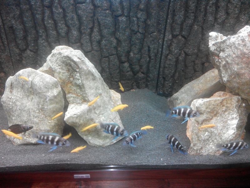 Καλώς ήρθες φίλε στα όμορφα νερά μας! Πολύ ωραίο το ενυδρείο σου, ωραίο το sumb, αλλά και οι πέτρες που διάλεξες. Και η δικιά μου γνώμη είναι πως θα χρειασθείς και άλλες πέτρες και να τις διαμορφώσεις έτσι ώστε κάποιες να είναι με μικρές σχισμές για τα leleupi και τους calvus και κάποιες άλλες με μεγαλύτερα κενά για να χωράνε οι φροντόζες. Επίσης αν βάλεις calvus σκέψου το γεγονός να βάλεις και λίγα κοχύλια, ώστε να χωράει το θηλυκό αλλά όχι το αρσενικό. Και ο συνδυασμός ψαριών που σου προτείνει ο Κλεόβουλος είναι ωραίος και σίγουρος, αλλά αφού έχεις κολλήσει με τις φροντόζες σε βλέπω να κάνεις τα δικά σου!!! Πάντως ταιριάζουν πολύ ωραία τα ψαράκια που θέλεις, με την προοπτική βέβαια ότι σύντομα θα τους περιμένει ένα μεγαλύτερο σπίτι!
