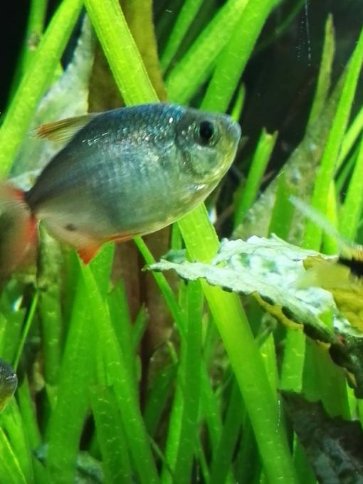Οι ασθενείς μας είναι πλεον μια Χαρούλα! Τα πτερύγια και οι ουριτσες εγειαναν και το μονο που θυμίζει την περιπέτειά μας είναι το απότομο κόψιμο του χρωματισμού στις ουριτσες, εκεί που ανασυστάθηκαν! Βέβαια το μαυρακι που είχε ο φίλος μας στον (ή κοντά) στον ποπό του παραμένει ως είχε. Δεν φαίνεται όμως κάποια δυσφορία στο ψάρι που είναι ζωηροτατο. Πάει μπροστά στην έξοδο του ριακτορα και παίζει με την ροή! Μια χαρά λοιπόν! Κώστα, αφου σ' ευχαριστήσω για την πολιτιμη βοήθειά σου, να σε ρωτησω αν θα συνεχίσω και τρίτη εβδομάδα την θεραπεία?
