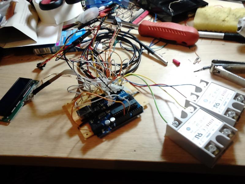 Υπο κατασκευη, ειμαι στο σταδιο που δουλευει κανονικα , και πρεπει να φτιαξω ενα κουτι και τα λοιπα.. ουσιαστικα ενα οθονακι με 2 κουμπια με τα οποια οριζεις την θερμοκρασια που θελεις να υπαρχει .. ενα beeper το οποιο ενημερωνει εαν εχουν ξεπεραστει οι 30 βαθμοι με δυνατοτητα να το κλινεις , αυτο.. κοστος 35 ευρω , θα μπορουσε ομως και φτηνοτερα ,οι ρελεδες που δουλευω τωρα αντεχουν εως 40Α σε 220v .. σχετικα ευκολο κυκλωμα ακομα και για αυτους που δεν εχουν εμπιρια, αρκετα χρησιμο ομως στα ενυδρεια μας. DSC_0057.jpgDSC_0056.jpg