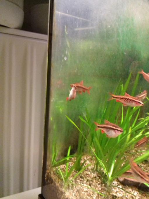 αν βρεθείς από Κερατσίνι, έλα να σου δώσω 2 cherry barb που βρέθηκαν ξόφαλτσα στο ενυδρείο μου