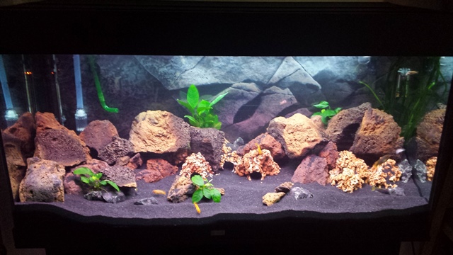 Λάμπρο καλή αρχή στην Αφρική. Εντυπωσιακό το φόντο και δίνει την αίσθηση 3D. Από τεχνικό εξοπλισμό είσαι καλά ίσως προσθέσεις έναν κυκλοφορητή μελλοντικά. Το νου σου στις πέτρες γιατί φαίνονται αιχμηρές. Με την πρώτη ευκαιρία να μετρήσεις και τις σκληρότητες του νερού σου. Να είσαι προσεκτικός στις τροφές που επιλέγεις. Καλή επιτυχία!
