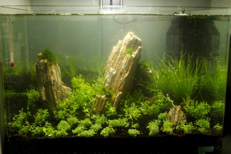 Μερικές φωτό όπως υποσχέθηκα μετά από 2 εβδομάδες φυτέματος. Οπως θα παρατηρήσετε προστέθηκε DYI CO2 (τρέχει 5 ημέρες) και έγινε αλλαγή στο φωτιστικό από led 6 watt/500 lumen σε t5 24watt/1500 lumen (εδώ και 3 ημέρες).