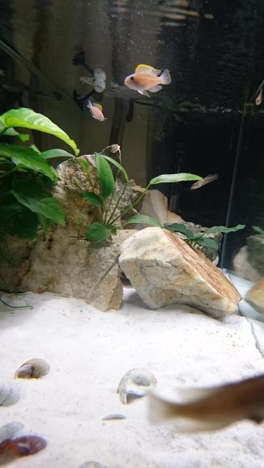 Η μονη αλλαγη που θα κανω ειναι να προσθεσω μερικες Vallisneries Πληροφορίες Διαστάσεις:1χ41χ50 Όγκος:200 Κατηγορία:λιμνη tanganyika Φυτά:anubies Ψάρια / Άλλα είδη:5 lamrologus meleagris("Lamprologus" stappersii/) 2 Lamprologus Caudopunctatus(αρσενικο-θυληκο) Διακοσμητικά υλικά:χαλαζιακη αμμο - πετρες -κελεφυ (χαλίκι, ξύλα κ.λ.π.) Φόντο:μαυρο χαρτονι Φωτισμός: Διάρκεια φωτισμού:περιπου 6 ωρες καθε μερα Φιλτράρισμα: Θερμοστάτης: Λίπανση: Παροχή CO2: Παράμετροι: pH:8,5 Γενική σκληρότητα (GH):15 Ανθρακική σκληρότητα (ΚΗ):15 Αμμωνία (ΝΗ3): Νιτρώδη (ΝΟ2): Νιτρικά (ΝΟ3): Αλλαγές νερού:30% καθε εβδομαδα Θερμοκρασία:26 Άλλες πληροφορίες: Φωτογραφία: |