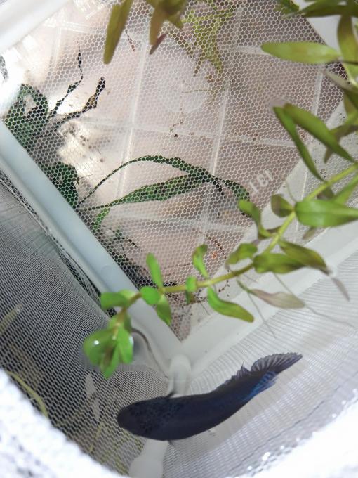 μετα από αρκετή απόχή απο το χόμπι θέλω να σας δείξω ένα εγχειρημα που έκανα ο τρόπος και γενικά όλη την διαδικασία αναπαραγωγής ενός crowntail αρσενικού και θηλυκιας μονομαχίνας.. Η αρχή: Ετσι όπως καθόμουν και χάζευα μονομαχοενυδρεία και σαν πρώην κάτοχος ενυδρείου αποκλειστικά με μονομάχο, μου ήρθε η ιδέα να προσπαθήσω να συντηρησω ξανα έναν μονομάχο.. Πριν γίνει αυτο όμως θα έπρεπε με κάποιον τρόπο να βρω που θα μπει καθώς δεν είχα καθόλου χώρο μέσα στο σπιτι.. Για να μην πολυλογώ πήρα ένα κουτί μεταφοράς, έβαλα φιλτρο με σπογγο και wool, θερμοστάτη σταθερά 26 και το εβαλα μπρος.. στρώθηκε με αμμωνια για κανα 3 βδομάδες περιπου.. Μπήκε ο μονομάχος (ο κούκλος μονομάχος Η κοπελια: Περασε κανα 2 μηνο και λεω εντάξει καλα τα παει ο μονομάχος πάμε για να ψάξουμε την κοπελιά.. Εψαξα σε πολλά μερη και δεν εβρισκα με τιποτα ώσπου είδα ξαφνικά απο το τζαμπι μια μπλε ομορφια.. Δεν το σκεφτηκα και πολυ την πήρα και την έφερα σπιτι.. Πήρα και μια γεννηστρα με τρυπες σαν διχτυ ώστε να την βλέπει ο μονομάχος και να φτιάξει φωλιά.. Έγινε η αρχή έκανε φωλια αλλά φαινόταν ότι δεν ήξερε τι και πως να αντιδρασει.. Απελευθερωνω την θηλυκια και ειμαι απο πανω με την αποχη σε περιπτωση που γίνει βλακεια.. Εγιναν καποιες μαχες μικρές μεν αλλα δυνατα τσιμπηματα και ημουν ετοιμος να την βγάλω μεχρι που είδα ανταποκριση.. Το ζευγαρωμα: Κλασσική περίπτωση όπως βλέπουμε στα βιντεο οι αγκαλίτσες κλπ κλπ.. Η πρωτη προσπαθεια δεν ηταν καλη και ενω εβγαλε αυγα ο αρσενικος τα ετρωγε. Εκεί λιγο απελπιστηκα.. Ενταξει λεω δεν πειραζει παλι μεσα στο διχτυ και απο την αρχή. Ετσι εγινε μπηκε ξανα στο διχτυ μεσα στο μερος που ηταν ο αρσενικος και περιμενα... Ξανα ελευθερωση ξανα τα ιδια και ξαφνικα βλεπω γεμιζει με αυγα τις φυσαλιδες.. Περναει κανα 3 ωρο μαζεψε καμια 200 αυγα ( ποσα ειχε πια και αυτηη..χαχα) και ξαφνικα βλεπω να τσιτωνουν και οι 2 και να σφαζονται.. Βγαινει η θυληκια αμεσως και μενει ο μπαμπας.. Η εκκολαψη: Πέρασαν 2 μερες.. φως απλετο δεν εσβηνε ουτε το βραδυ μετακινουσε συνεχως τα αυγα (ξυπνουσα το βραδυ και τον χαζευα) μεχρι που ειδα μια ουριτσα.. Λεω τι κιολας?? Κατευθειαν αρτέια να ετοιμαζεται.. Μεχρι που τώρα έχουμε καμια 100 ουριτσες να χτυπανε σπασμωδικα και να προσπαθουν να φτάσουν την επιφανεια με τον μπαμπα εμφανως εξαντλημενο μετα απο 48 ωρες χωρις ξεκουραση αλλα να μην τα φηνει λεπτο απο τα ματια του.. Και πλεον ειμαστε σε αυτο το στάδιο όπου τα μικρά έχουν αρχίσει δειλα δειλα να κολυμπανε καθώς αρχίσουν να καταναλώνουν τον σακο τους.. Ακολουθουν φωτος: