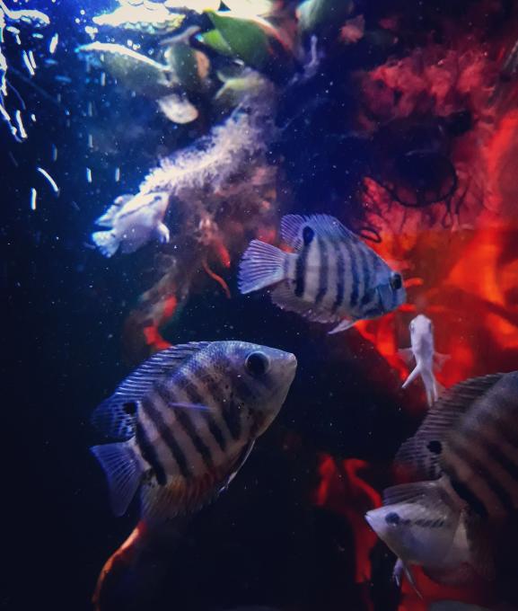 Αυτή ειναι το ενυδρείο μου καθως και η συμμετοχή μου για τον φετινό διαγωνισμό Βιοτοπικού Aquascape στο BADC2018 !! ![]() Λίγα λόγια για το ενυδρείο : Τίτλος ενυδρείου/βιότοπος: Rio Demini, Upstream area near the community of Tabocal Λίτρα: 330L Διαστάσεις: 150x40x55 cm Ψάρια/Οργανισμοί: Symphysodon discus, Dicrossus filamentosus, Nannostomus eques, Heros efasciatus, Mesonauta festivus, Hemigrammus bleheri, Corydoras adolfoi Φυτά: Eichhornia crassipes Διακόσμηση: Συνδοιασμός Ξύλων που βρίσκονται στο φυσικό περιβάλλον,ψιλή αμμος για τον βυθό,ομοια με αυτή του βιοτόπου,σπασμένα κλαδιά και φύλλα σε αποσύνθεση, Ποταμίσιες πετρες Εξοπλισμός: Εσωτερικό Σαμπ,Αντλία 1000λ/ω,θερμαντήρας 300w 2χ45w T5 λαμπες ,1χ led spot για εφέ moonlight Παράμετροι νερού: Η θερμοκρασία στο ενυδρείου ειναι ρυθμισμένη στους 29 βαθμους με μικρές μεταβολές που προσομοιάζουν τις βροχερές περιόδους ή τα ψυχρότερα ρεύματα που κυλούν κατα μήκος. Το ph ειναι στο 5.2 με 4gh και 2kh -------------------------------------------------------------------------------- Tαο»Ώ ψάρια και τα υλικά για την συμμετοχή προέρχονται απο το ΚΑΤΑΣΤΗΜΑ ΑΒΥΣΣΟΣ Σο»Ώυγχαρητήρια στους υπόλοιπους Ελληνες συμμετέχοντες και καλη μας επιτυχία ! Το λίνκ για το ενυδρείο στο Διαγωνισμό -> http://biotope-aquarium.info/aquariu...abocal-330-l/# ΤΟ βίντεο του ενυδρείου -->https://www.youtube.com/watch?v=ppYh1Fijnic&t=0s και μερικές φωτογραφίες (αν μπορεί καποιος διαχειριστης ας τις βάλει σε μεγαλη αναλυση οπως και το βιντεο που δεν φορτώνει στο παραθυρο!) |
