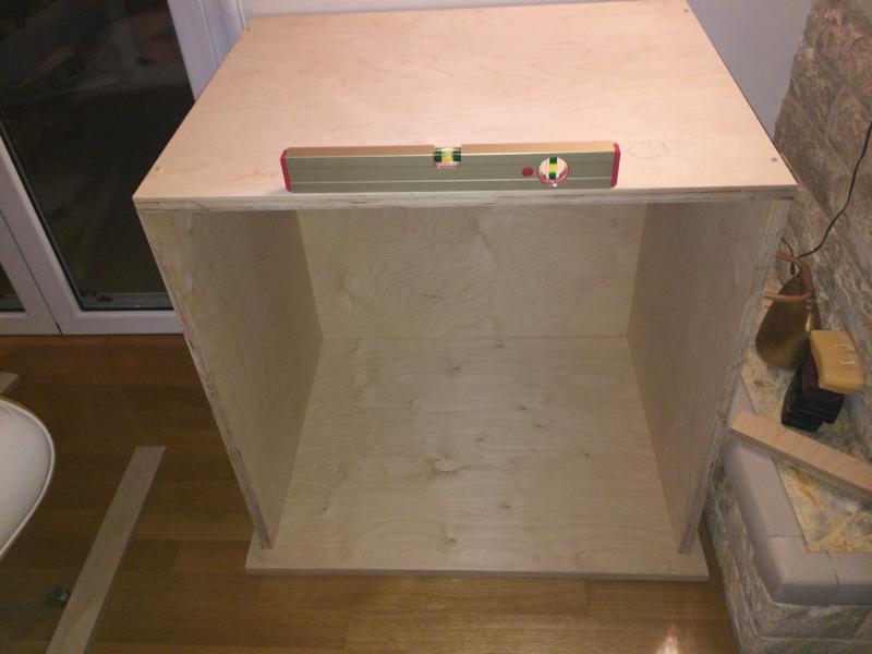 Το έπιπλο φτιάχτηκε από μένα με κόντρα πλακέ θαλάσσης 2 εκατοστά και 3 εκατοστα στο κέντρο.