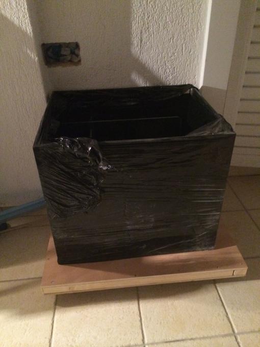 φτιάχνω ειδική κατασκευή με νταου 3 εκατοστά σάντουιτς από κοντρα πλακε θαλάσσης . ο πύργος έχει ύψος έτσι ώστε στο πάνω διαμέρισμα να φιλοξενήσει αργότερα την αναπλήρωση και πιθανα εως σίγουρα και chiller. H τρυπα επικοινωνία είναι αρκετά μεγάλη έτσι ώστε να φέρνω και αέρα από το δωμάτιο. ο πύργος ( το ονόμασα έτσι το δωμάτιο του sump ) θα έχει γρίλλιες για εξαερισμό. δυστηχώς ο χώρος είναι περιορισμένος και πάλι καλά....γιατί δεν μένω μόνος μου...